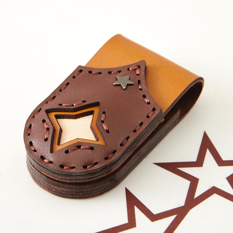 星を大きくデザインしたマネークリップ。四、五、八芒星の3デザインです。強力なマグネットでお札をしっかりと挟みつつ、レザーならではの質感で抜き差しもスムーズ。コインケースとセットでのご使用もおすすめ。男性におすすめなシックなカラーから、女性にもお使い頂けるポップなカラーまでご用意。※強力なマグネットを使用しているので、クレジットカード・ICカードなどの磁気式のカードや、磁気干渉により破損・故障の原因になるものには近付けないで下さい。