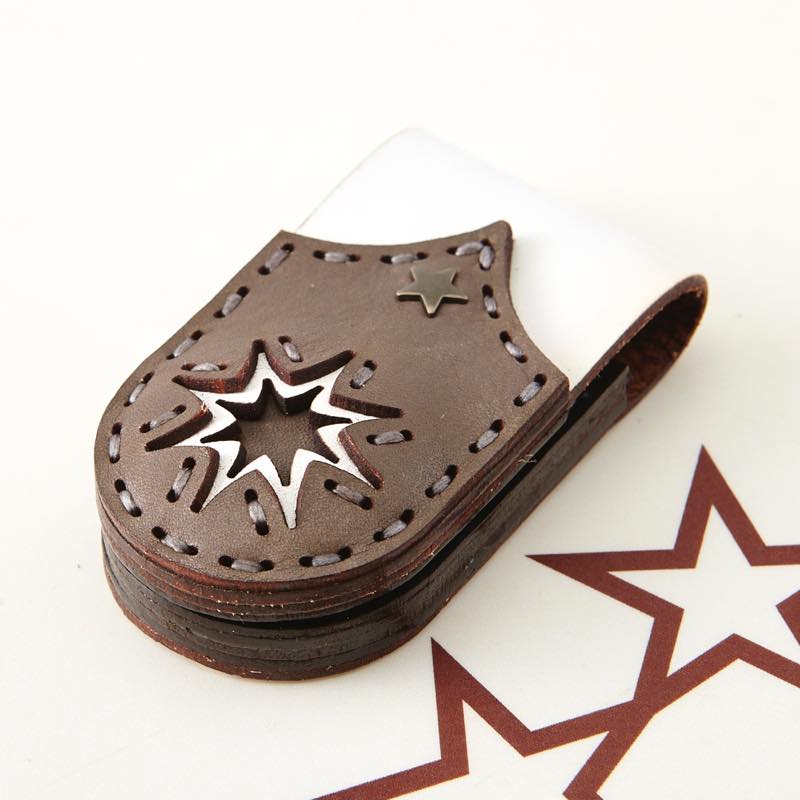 星を大きくデザインしたマネークリップ。四、五、八芒星の3デザインです。強力なマグネットでお札をしっかりと挟みつつ、レザーならではの質感で抜き差しもスムーズ。コインケースとセットでのご使用もおすすめ。男性におすすめなシックなカラーから、女性にもお使い頂けるポップなカラーまでご用意。※強力なマグネットを使用しているので、クレジットカード・ICカードなどの磁気式のカードや、磁気干渉により破損・故障の原因になるものには近付けないで下さい。