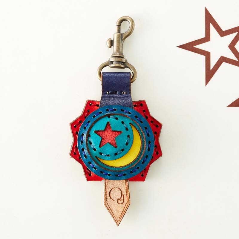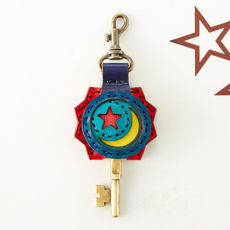 月と星がデザインされたキーキャップです。丸いフラップ部分とは対照的なギザギザした背面が特徴です。便利なナスカン付きなので、ベルトループやキーホルダーに付けてお使い頂けます。