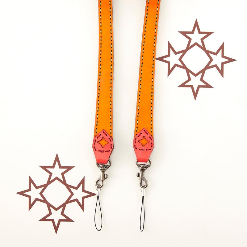 四芒星のマークを施したカメラストラップです。