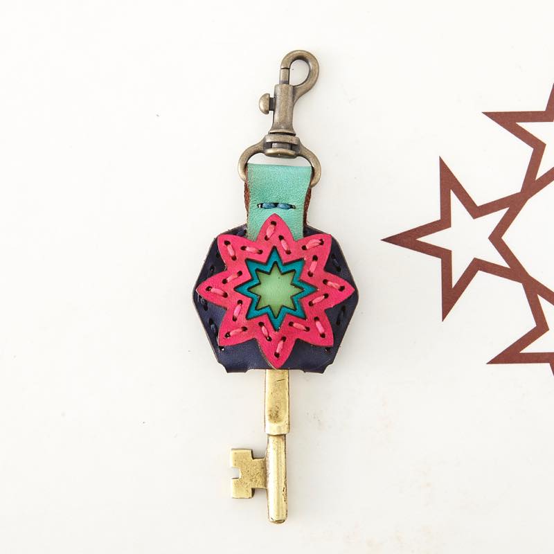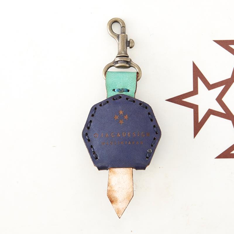 八芒星がデザインされたキーキャップです。三枚の革を重ねて表現した八芒星が印象的な仕上がりとなりました。便利なナスカン付きなので、ベルトループやキーホルダーに付けてお使い頂けます。