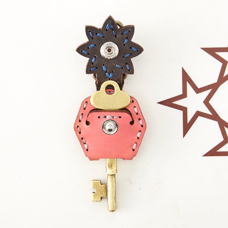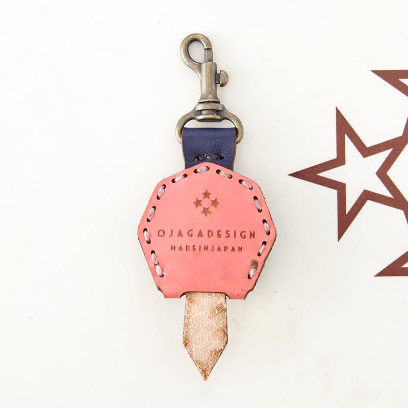 八芒星がデザインされたキーキャップです。三枚の革を重ねて表現した八芒星が印象的な仕上がりとなりました。便利なナスカン付きなので、ベルトループやキーホルダーに付けてお使い頂けます。