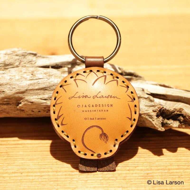スウェーデンを代表する陶芸家、リサ・ラーソンの作品「ライオン」をデザインしたキーホルダーです。北欧ならではの温かみのあるデザインと、レザーならではの質感がマッチした印象的な仕上がりです。使い込むごとに出る味を楽しめる、シックなブラウンのカラーリングでまとめました。ライオンのキーキャップや、お手持の鍵などを着けてお使い下さい。