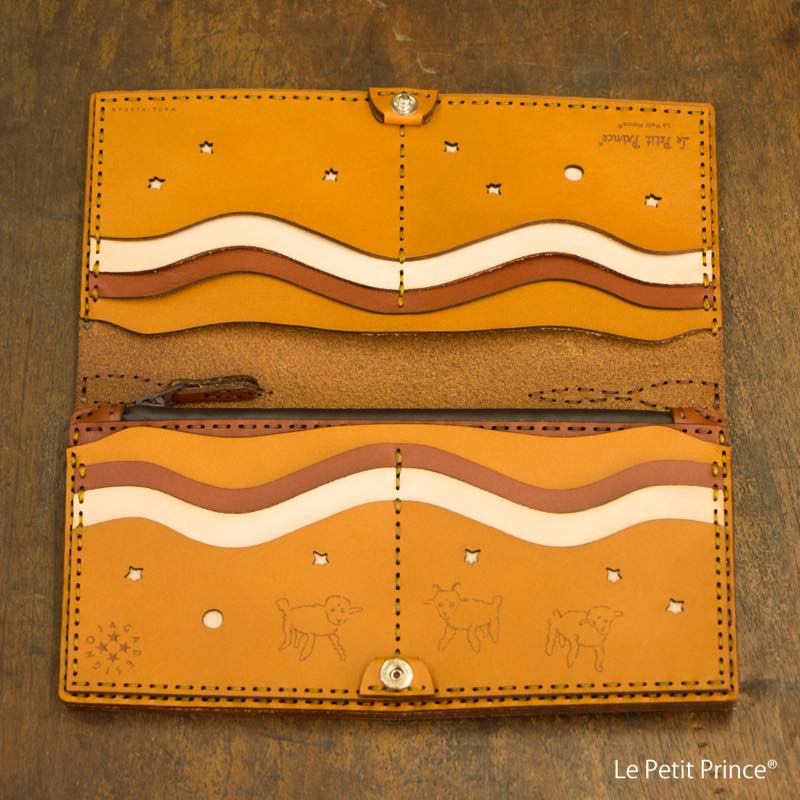 世界中で愛される童話「星の王子さま」とのコラボアイテムひつじの箱をデザインしたロングウォレットです。内側には三匹のひつじたちと、繰り抜かれた星たちがデザインされております。表面の印象とは対照的な、遊び心を盛り込んだ内側のカラーリングもポイント。たくさんのカードポケットとジッパータイプの小銭入れで、使いやすさも抜群。
