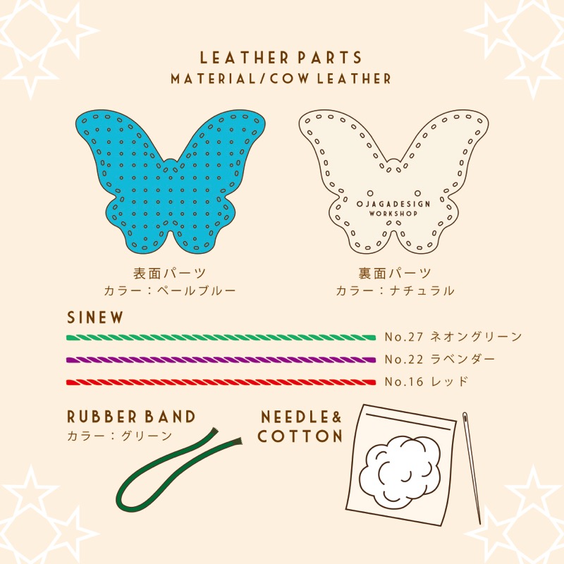 モノ作りをお気軽にお楽しみ頂けるOJAGA KIT。ワークショップイベントでお馴染みのワークショップアイテムをパッケージング。自分だけのオリジナルヘアーバンドがお作り頂けるキットです。作るのに必要な針とシニュー糸も同封しているのですぐにお楽しみいただけます。ご自宅やお好きな場所でのんびりと、自分だけのオリジナルアイテム作りをお楽しみ下さい。※写真5枚目は完成イメージです。完成品はパッケージに含まれません。