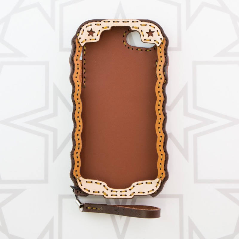 シンプルなオジャガスター柄のiPhone6/7/8ケースです。背面を一枚の革で仕上げ、ひとつひとつ手押しで押したオジャガスターの焼印のみのを施すことでシンプルさを追求しました。iPhone本体をしっかりと覆うことができるデザインで、側面にもレザーを使用することで保護性もアップ。ウェーブ状のカットで持ちやすさも重視し、ホームボタン部分は押しやすいよう広めの作りになっております。