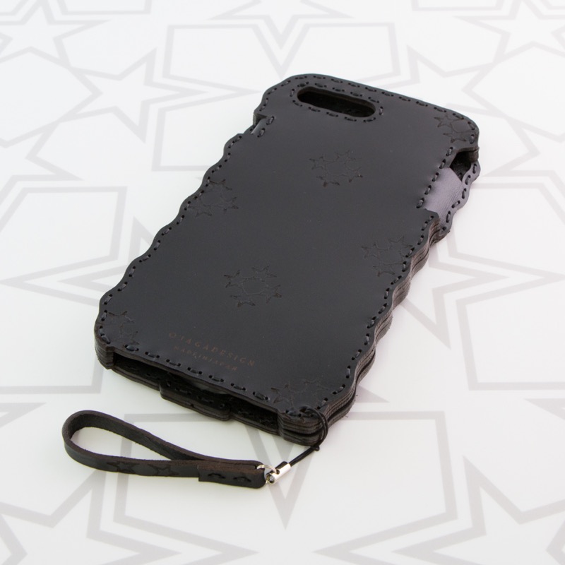 シンプルなオジャガスター柄のiPhone6Plus/7Plus/8Plusケースです。背面を一枚の革で仕上げ、ひとつひとつ手押しで押したオジャガスターの焼印のみのを施すことでシンプルさを追求しました。iPhone本体をしっかりと覆うことができるデザインで、側面にもレザーを使用することで保護性もアップ。ウェーブ状のカットで持ちやすさも重視し、ホームボタン部分は押しやすいよう広めの作りになっております。※iPhone8Plusでご使用の場合、ワイヤレス充電がご使用いただけない可能性がございます。予めご了承下さい。