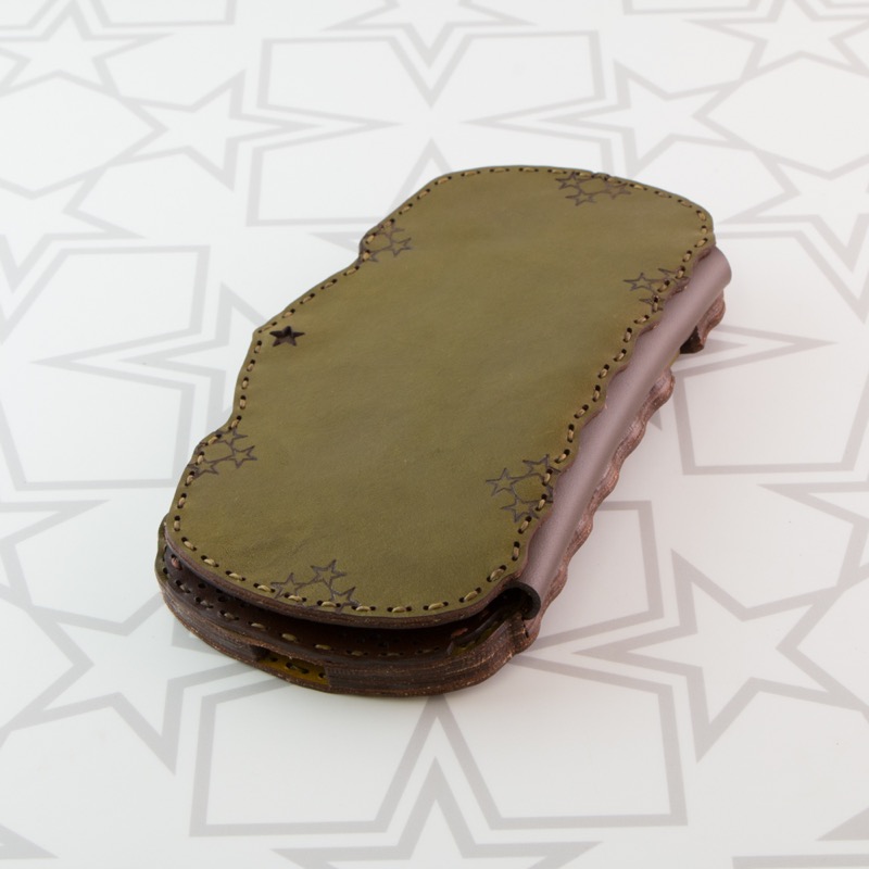 ダイアリータイプのiPhone6Plus/7Plus/8Plusケースです。持ちやすい波型カットはそのままに、画面の保護にも役立つポケット付きのフタが付きました。ケース上部からiPhoneを入れ、入り口をボタンで留める新しいデザインです。表面はさりげないオジャガスターと小さな星のみを配置。カラーによって表情が変わるシンプルなデザインで、経年変化も存分にお楽しみいただけます。内側には2つのカードポケットがついた便利な仕様。独特なカットや丸み、さりげない月星で、オジャガデザインらしさあふれるケースです。