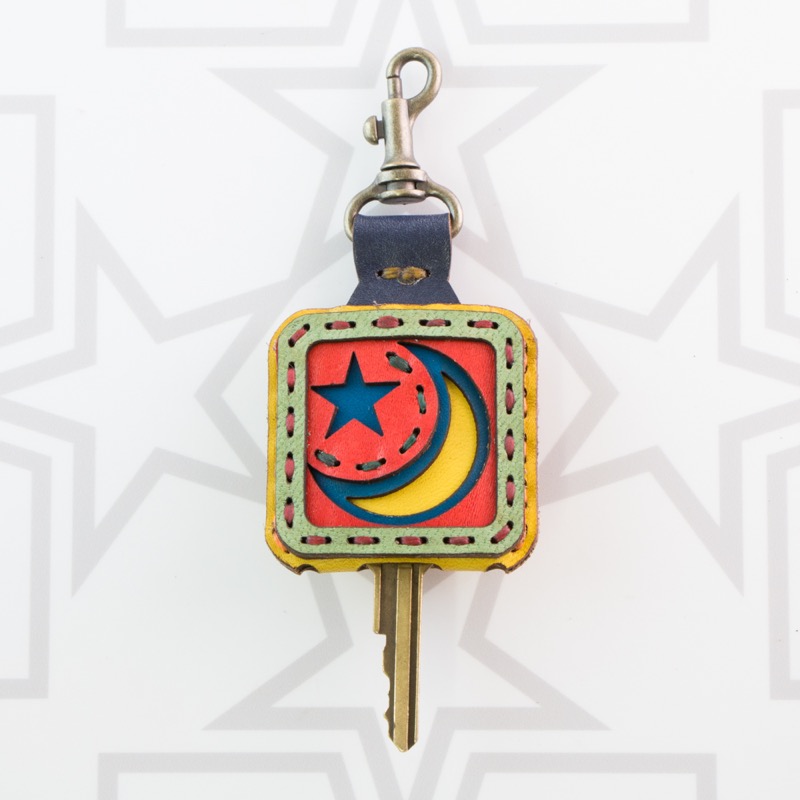 月と星が表と裏の両面にデザインされたキーキャップです。表裏それぞれ異なったカラーリングで、2つの表情をお楽しみ頂けるデザインとなっております。お手持ちの鍵をおしゃれに彩るだけでなく鍵の目印にもなり、便利なナスカン付きなので、ベルトループ、キーホルダー、ファスナーなどに着けて紛失防止にも役立ちます。