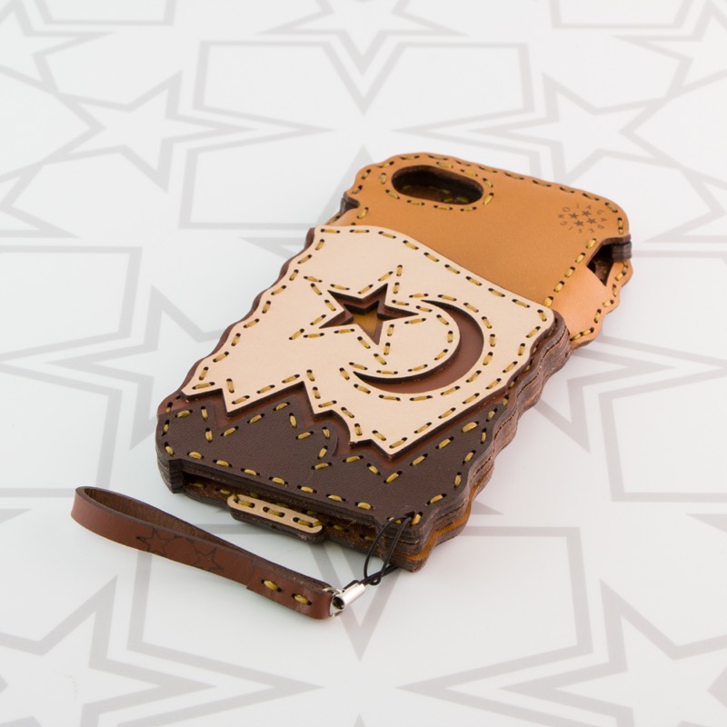 月星モチーフをデザインしたiPhone6/7/8ケースです。ポケット部分は空に浮かぶ月星と山をデザインし、風景画のような幻想的な仕上がりに。星の部分がくり抜きになっており、ポケットにカードを入れると一味違った表情を楽しめます。iPhone本体をしっかりと覆うことが出来、側面にもレザーを使用することで保護性を高め、ウェーブ状のカットを施すことで持ちやすさも重視。ホームボタン部分は押しやすいよう広めの作りになっております。