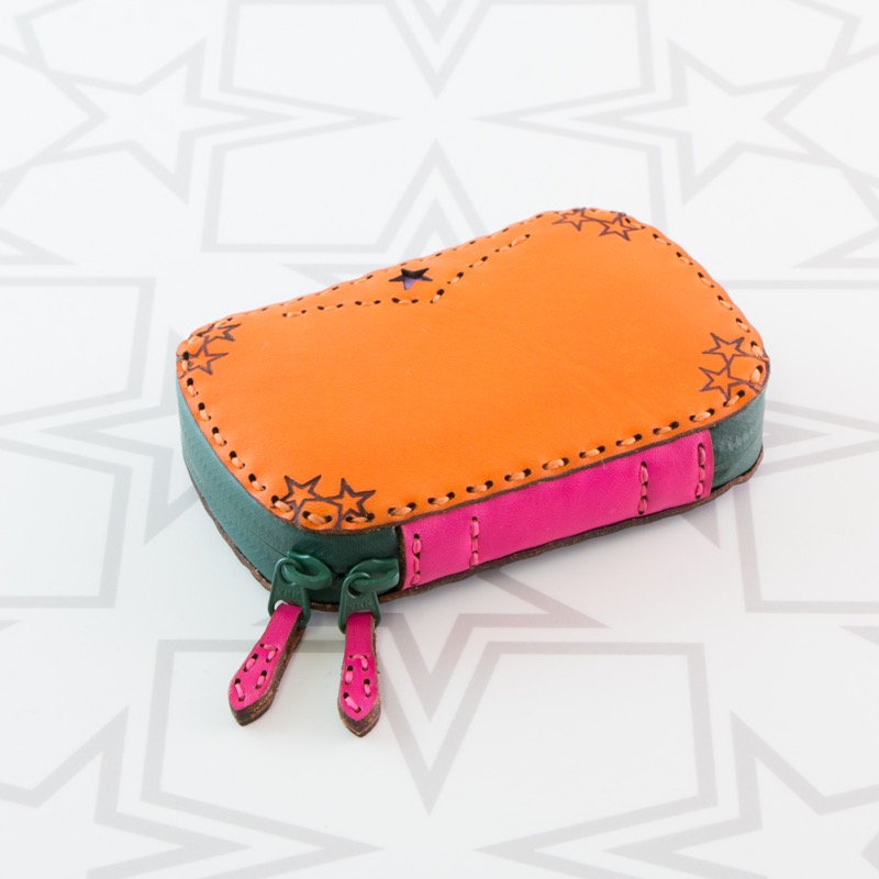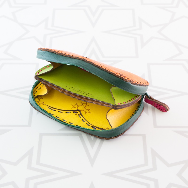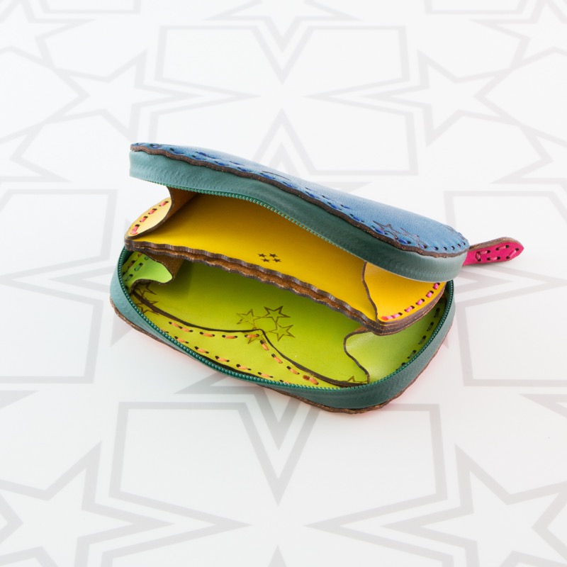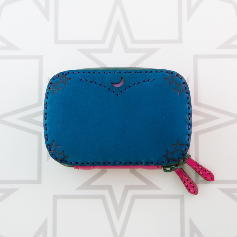 月と星、V字のステッチを施したラウンドジップタイプのラウンドジップタイプのコインケースです。