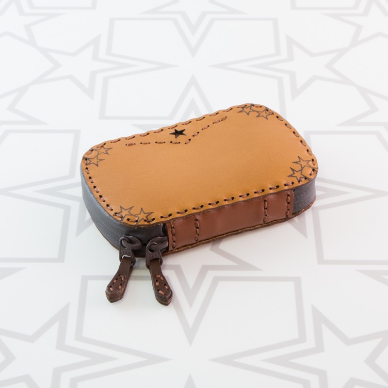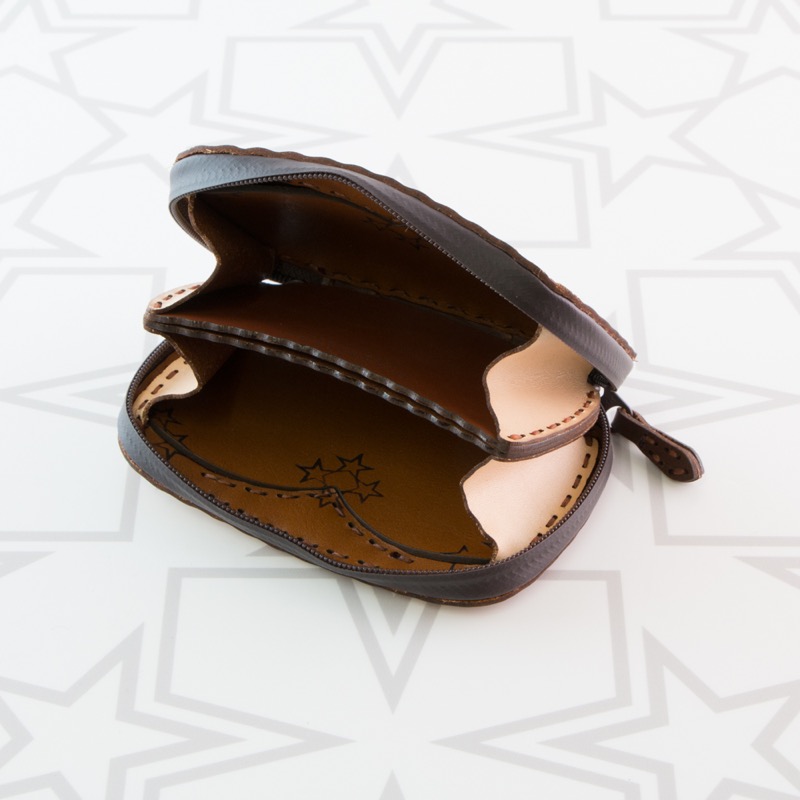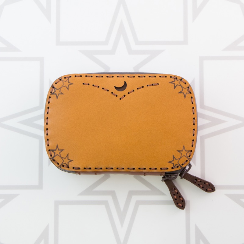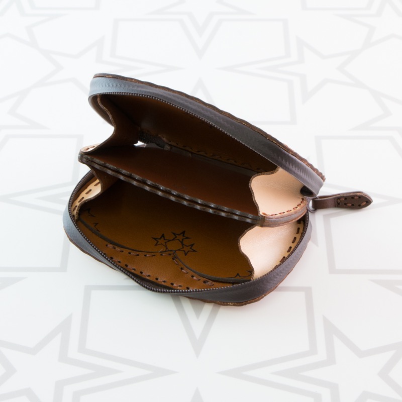 月と星、V字のステッチを施したラウンドジップタイプのラウンドジップタイプのコインケースです。