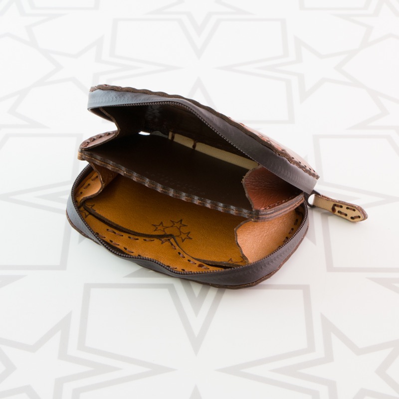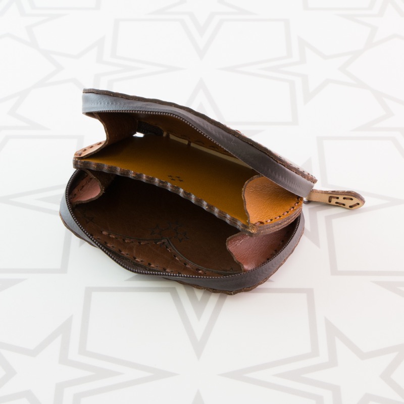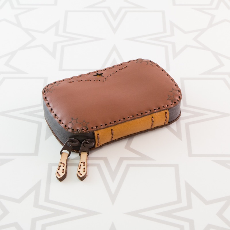 月と星、V字のステッチを施したラウンドジップタイプのラウンドジップタイプのコインケースです。