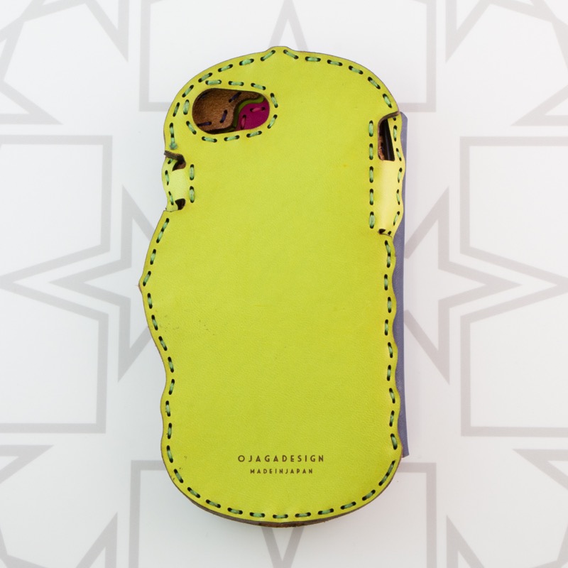 ダイアリータイプのiPhone6/7/8ケースです。持ちやすい波型カットはそのままに、画面の保護にも役立つポケット付きのフタが付きました。ケース上部からiPhoneを入れ、入り口をボタンで留める新しいデザインです。表面はさりげないオジャガスターと小さな星のみを配置。カラーによって表情が変わるシンプルなデザインで、経年変化も存分にお楽しみいただけます。内側には2つのカードポケットがついた便利な仕様。独特なカットや丸み、さりげない月星で、オジャガデザインらしさあふれるケースです。