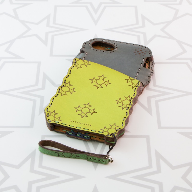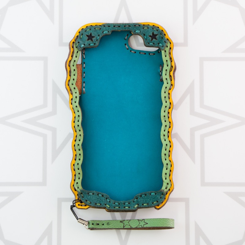 シンプルなオジャガスター柄のポケット付きiPhone6/7/8ケースです。シンプルなデザインにオジャガスターの焼印を施したポケットが付き、シンプルながらに利便性も高いデザインになりました。iPhone本体をしっかりと覆うことが出来、側面にもレザーを使用することで保護性もアップ。ウェーブ状のカットで持ちやすさも重視し、ホームボタン部分は押しやすいよう広めの作りになっております。