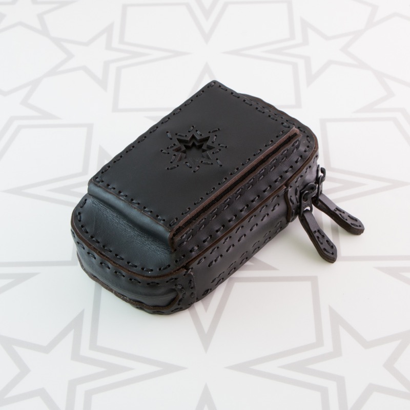 正面に八芒星をデザインしたアイコスケースです。革を重ねることで存在感のある八芒星に仕上がりました。内側にはなめらかなスエードを使用しました。アイコスを装着したままチャージャーの開閉、充電、ボタンの操作、ホルダーの取り出しが出来、右側にはヒートスティックのボックスがそのまま入る便利な仕様。ダブルジップなので開け閉めもしやすくなっております。※写真5枚目は着用イメージです。 アイコス本体、ボックスは製品に含まれません。