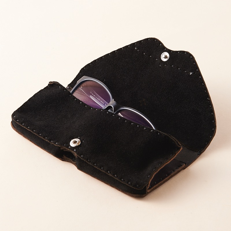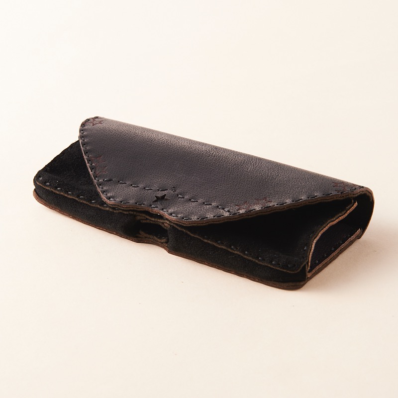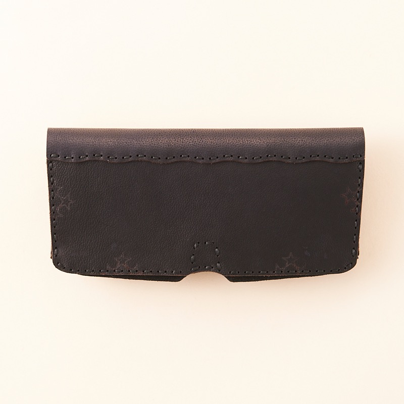 オジャガスターの焼印を施したメガネケースです。内側には大事なメガネやサングラスをやさしく守るなめらかで柔らかいスエードを使用し、外側とマチ部分にはハリのあるカウレザーを使用しました。ボタンタイプなので開閉も楽々。小さな星とオジャガスターで、オンにもオフにもお使いいただけるシンプルなデザインに仕上げました。