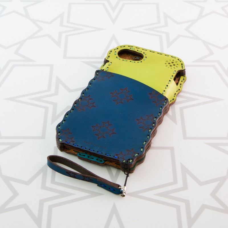 シンプルなオジャガスター柄のポケット付きiPhone6/7/8ケースです。シンプルなデザインにオジャガスターの焼印を施したポケットが付き、シンプルながらに利便性も高いデザインになりました。iPhone本体をしっかりと覆うことが出来、側面にもレザーを使用することで保護性もアップ。ウェーブ状のカットで持ちやすさも重視し、ホームボタン部分は押しやすいよう広めの作りになっております。