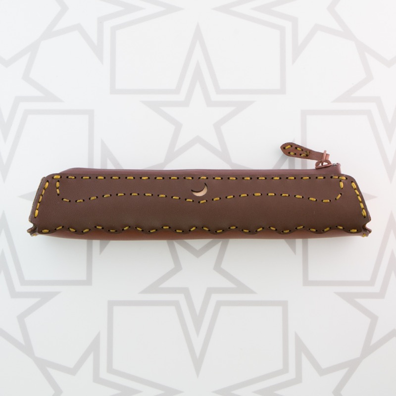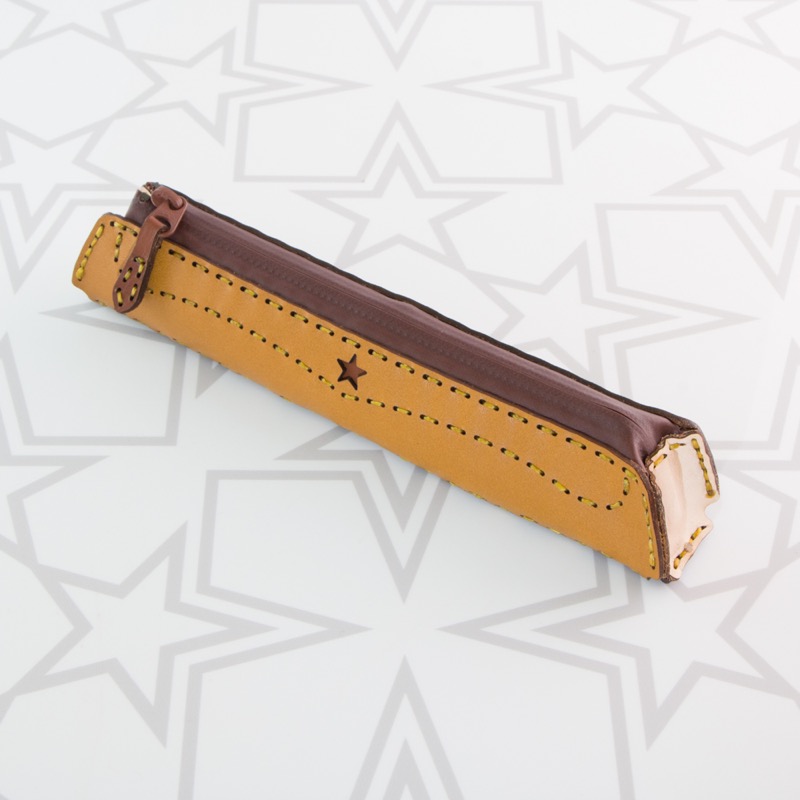 ジップタイプのペンケースがです。バッグの中で邪魔にならないコンパクトなサイズで、数本持ち歩きたい方にぴったりのスッキリとしたデザインになりました。ボールペンが約5本入り、大きく開くジップタイプなので中も見やすい作りとなっております。小さな月星と波型カットでオジャガデザインらしい仕上がりです。