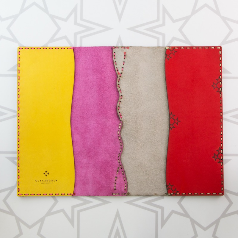 なめらかで手触りの良いスエードを使用したブックカバーです。背表紙の部分で波型に切り返しが入ったツートンカラーで手帳や本を彩ります。小さなふたつの星がワンポイントになったシンプルで使いやすいデザインです。新書判サイズ以外にも、A6判の文庫本サイズ、B6判、A5判、B5判、全5種類の豊富なサイズをご用意しております。※画像3枚目は装着イメージです。