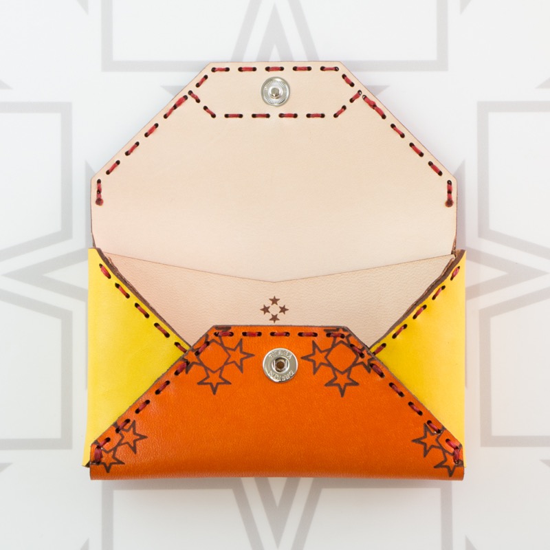 オジャガスターの焼き印が入ったシンプルなシリーズに、エンベロープ型のカードケースが新登場。大きく開く二ヶ所のポケットで見やすさを重視し、内側にも革を張ることで取り出しやすさも追求。名刺を約30枚入れてもスッと取り出せるので、カードケースとしてはもちろん、名刺入れとしてのご使用もおすすめです。エンベロープ型のシンプルな形でオジャガらしさの象徴でもあるハンドステッチやオジャガスターの焼き印が引き立ちます。手にしっくりと馴染むコンパクトなサイズ感も魅力のひとつです。