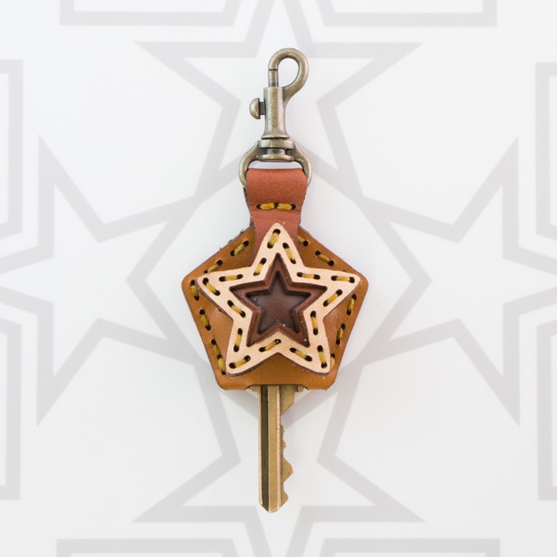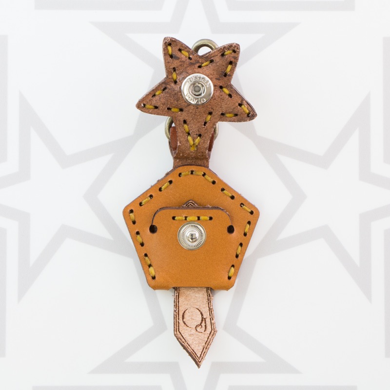 五芒星がデザインされたキーキャップです。ベースの五角形の上に3枚の革の五芒星を組み合わせた、立体感のある仕上がりです。お手持ちの鍵をおしゃれに彩るだけでなく鍵の目印にもなり、便利なナスカン付きなので、ベルトループ、キーホルダー、ファスナーなどに着けて紛失防止にも役立ちます。