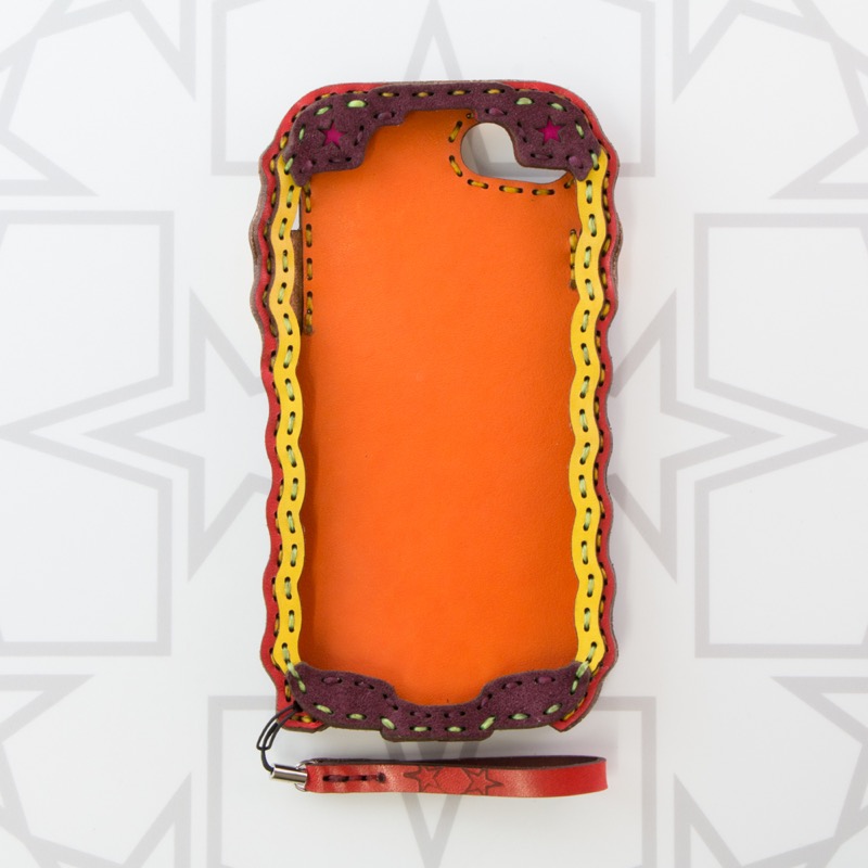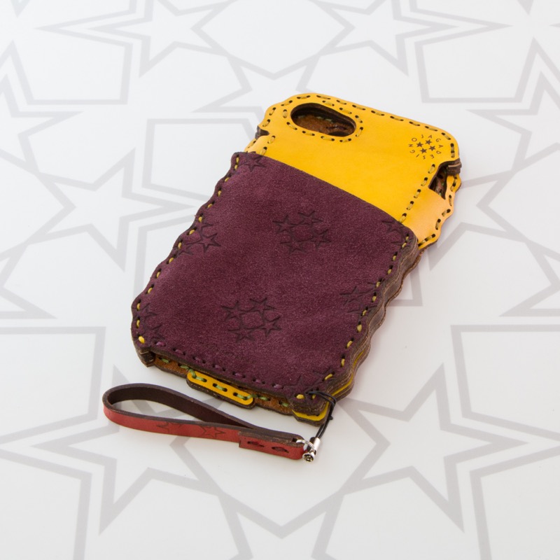 シンプルなオジャガスター柄のポケット付きiPhone6/7/8ケースです。シンプルなデザインにオジャガスターの焼印を施したポケットが付き、シンプルながらに利便性も高いデザインになりました。iPhone本体をしっかりと覆うことが出来、側面にもレザーを使用することで保護性もアップ。ウェーブ状のカットで持ちやすさも重視し、ホームボタン部分は押しやすいよう広めの作りになっております。