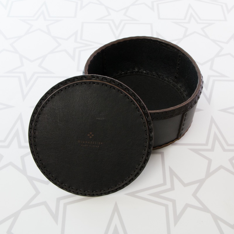 デスクトップアクセサリーのシリーズから新たに小物入れが登場。アクセサリー、常備薬などの細々とした小物の保管に便利なSサイズ、雑貨などがまとめて入れられる大きめのLサイズ、計2サイズをご用意。フタの取っ手に立体的に表現した小さな月がついたデザインで、コロンとしたフォルムにレザーの切り返しがポイントになった、こだわりのアイテムです。ミックス、ブラウン、ブラックの3パターンのお色をご用意しておりますので、デスクトップやお部屋の雰囲気に合わせてコーディネートしてみてはいかがでしょうか。