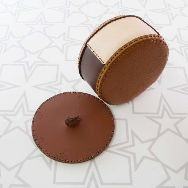 デスクトップアクセサリーのシリーズから新たに小物入れが登場。アクセサリー、常備薬などの細々とした小物の保管に便利なSサイズ、雑貨などがまとめて入れられる大きめのLサイズ、計2サイズをご用意。フタの取っ手に立体的に表現した小さな月がついたデザインで、コロンとしたフォルムにレザーの切り返しがポイントになった、こだわりのアイテムです。ミックス、ブラウン、ブラックの3パターンのお色をご用意しておりますので、デスクトップやお部屋の雰囲気に合わせてコーディネートしてみてはいかがでしょうか。