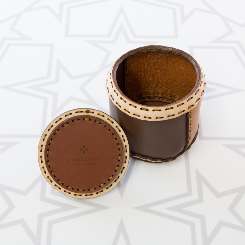 デスクトップアクセサリーのシリーズから新たに小物入れが登場。アクセサリー、常備薬などの細々とした小物の保管に便利なSサイズ、雑貨などがまとめて入れられる大きめのLサイズ、計2サイズをご用意。フタの取っ手に立体的に表現した小さな月がついたデザインで、コロンとしたフォルムにレザーの切り返しがポイントになった、こだわりのアイテムです。ミックス、ブラウン、ブラックの3パターンのお色をご用意しておりますので、デスクトップやお部屋の雰囲気に合わせてコーディネートしてみてはいかがでしょうか。