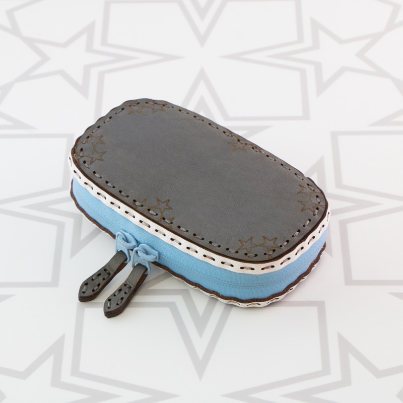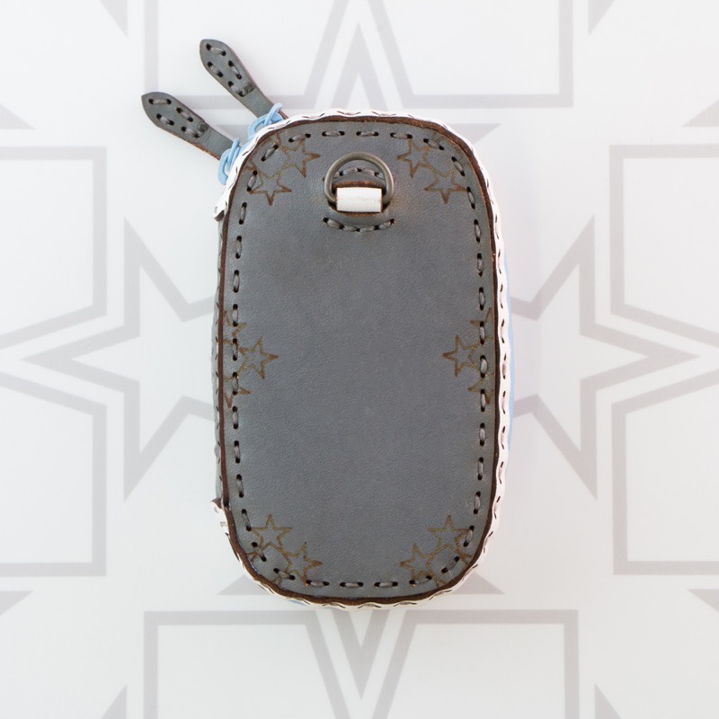 オジャガスターの焼き印が入ったシンプルなキーケースです。ダブルジップのラウンドファスナーと厚めのマチを付けることで中身を大切に保護するだけでなく、たくさんの鍵はもちろん、車用のスマートキーや厚みのあるノンタッチキーも収納が可能。よく使う鍵はレザーコード付きの二重リングに着けることで、鍵の開閉もスマートに。内側にはカードが収納できるようになっているので、駐車券やICカード、カードキーなどを入れられます。背面のDカンにはキーホルダーを着けたり、ベルトループと繋いだりと、カスタムしてお使い下さい。