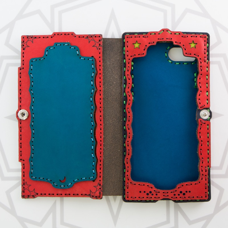 ダイアリータイプのiPhone6/7/8ケースに新型が登場。便利な内側のポケット、表のオジャガスターや小さな星のデザインはそのままに、スクエア型のフォルムですっきりとしたシルエットになりました。ケース上部からiPhoneを入れ、入り口をボタンで留める新しいデザインです。iPhoneの側面を覆うようにマチ部分もすべてレザーを使用しているので、大切なiPhoneをしっかりと守ります。右開き、左開きの二種類をご用意しておりますので、利き手に合わせてお好みのタイプをお選びください。※iPhone8でご使用の場合、ワイヤレス充電がご使用いただけない可能性がございます。予めご了承下さい。