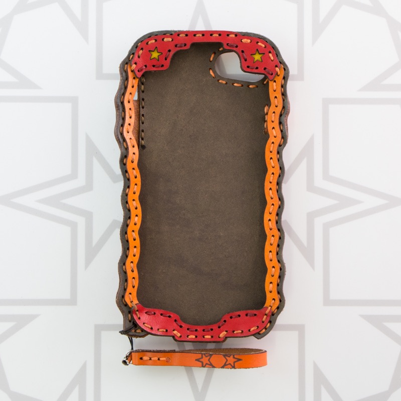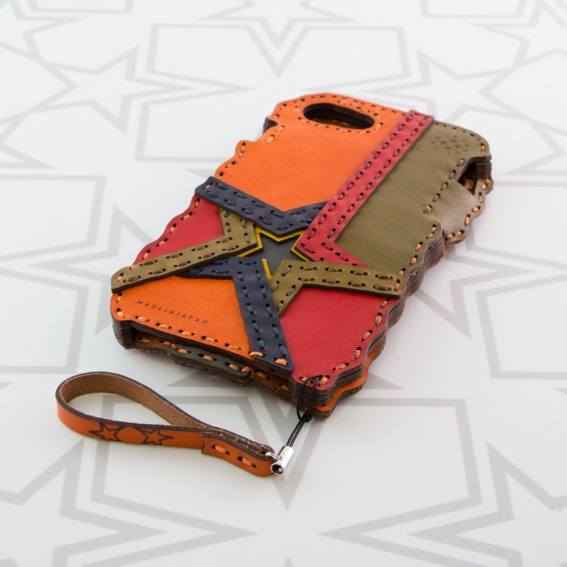 五芒星をデザインしたiPhone6/7/8ケースです。一風変わった五芒星を背面に大きく配置し、たくさんの革を重ねることでカラフルな配色が存分にお楽しみいただけるオジャガデザインらしさあふれるデザインになりました。iPhone本体をしっかりと覆うことが出来、側面にもレザーを使用することで保護性もアップ。ウェーブ状のカットで持ちやすさも重視し、ホームボタン部分は押しやすいよう広めの作りになっております。※iPhone8でご使用の場合、ワイヤレス充電がご使用いただけない可能性がございます。予めご了承下さい。