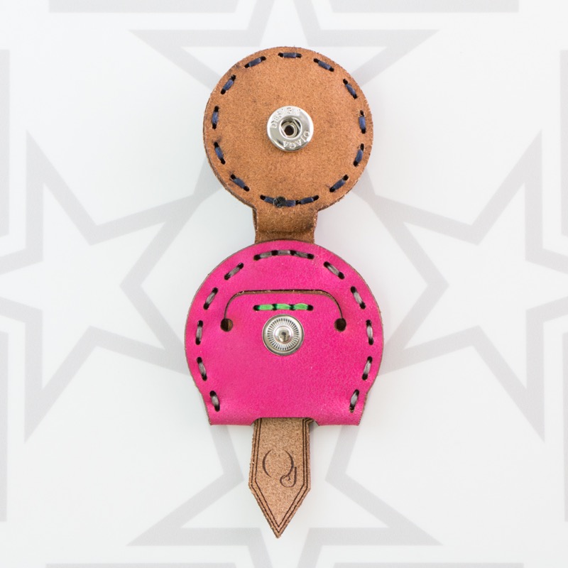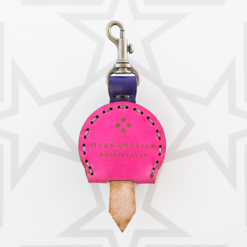 五芒星がデザインされたキーキャップです。丸いフォルムの真ん中に星を配置し、ステッチで縁取った印象的な仕上がりです。お手持ちの鍵をおしゃれに彩るだけでなく鍵の目印にもなり、便利なナスカン付きなので、ベルトループ、キーホルダー、ファスナーなどに着けて紛失防止にも役立ちます。