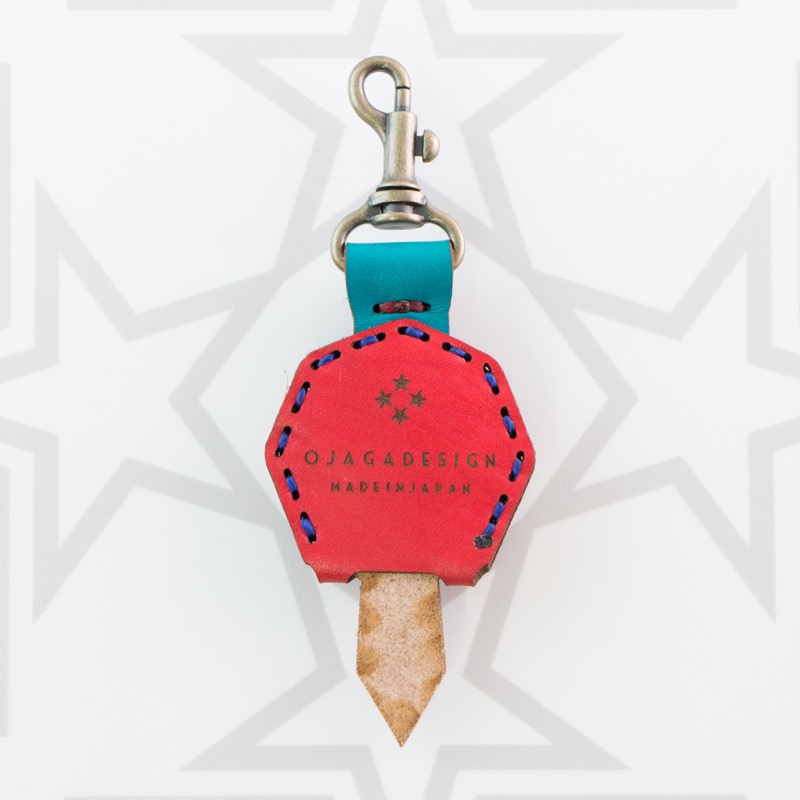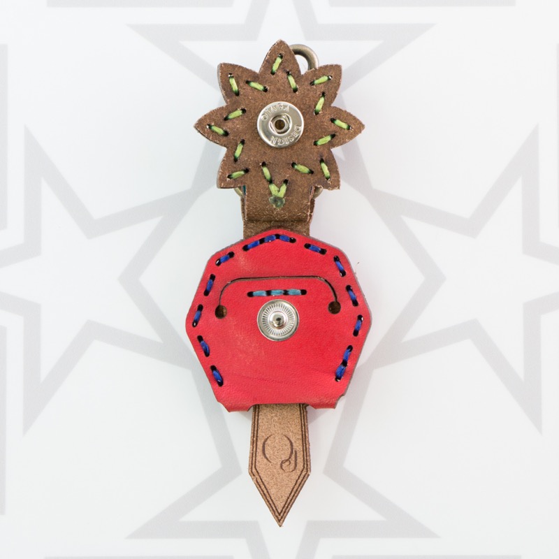 八芒星がデザインされたキーキャップです。三枚の革を重ねて表現した八芒星が印象的な仕上がりとなりました。お手持ちの鍵をおしゃれに彩るだけでなく鍵の目印にもなり、便利なナスカン付きなので、ベルトループ、キーホルダー、ファスナーなどに着けて紛失防止にも役立ちます。