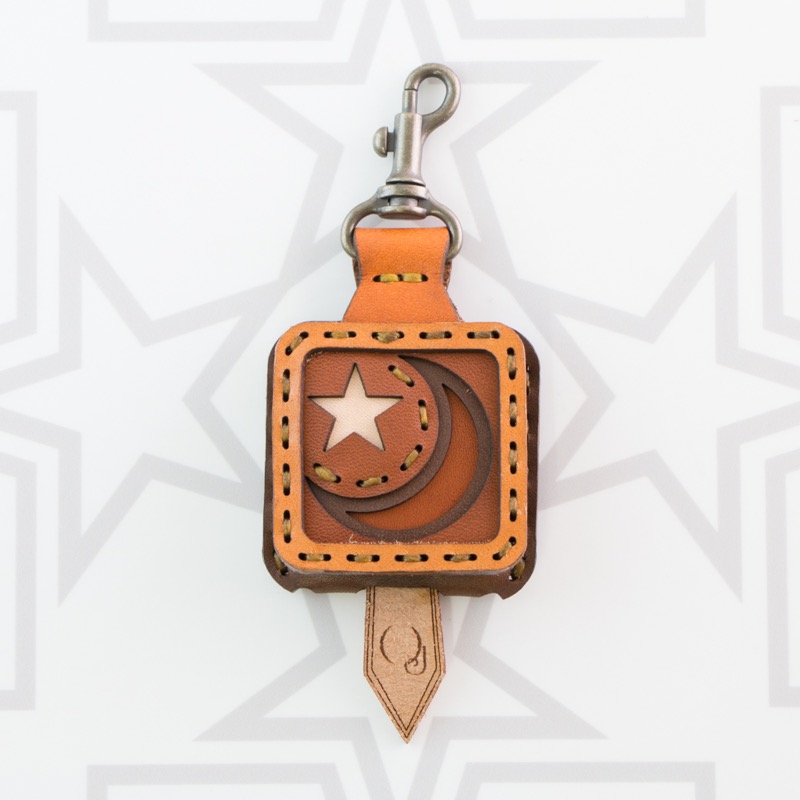 月と星がデザインされたキーキャップです。レザーキャンバスの中に風景を描きだしたようなイメージのアイテムに仕上がっています。お手持ちの鍵をおしゃれに彩るだけでなく鍵の目印にもなり、便利なナスカン付きなので、ベルトループ、キーホルダー、ファスナーなどに着けて紛失防止にも役立ちます。
