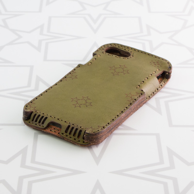 iPhoneの側面をすべてレザーで覆った保護性の高いデザインです。