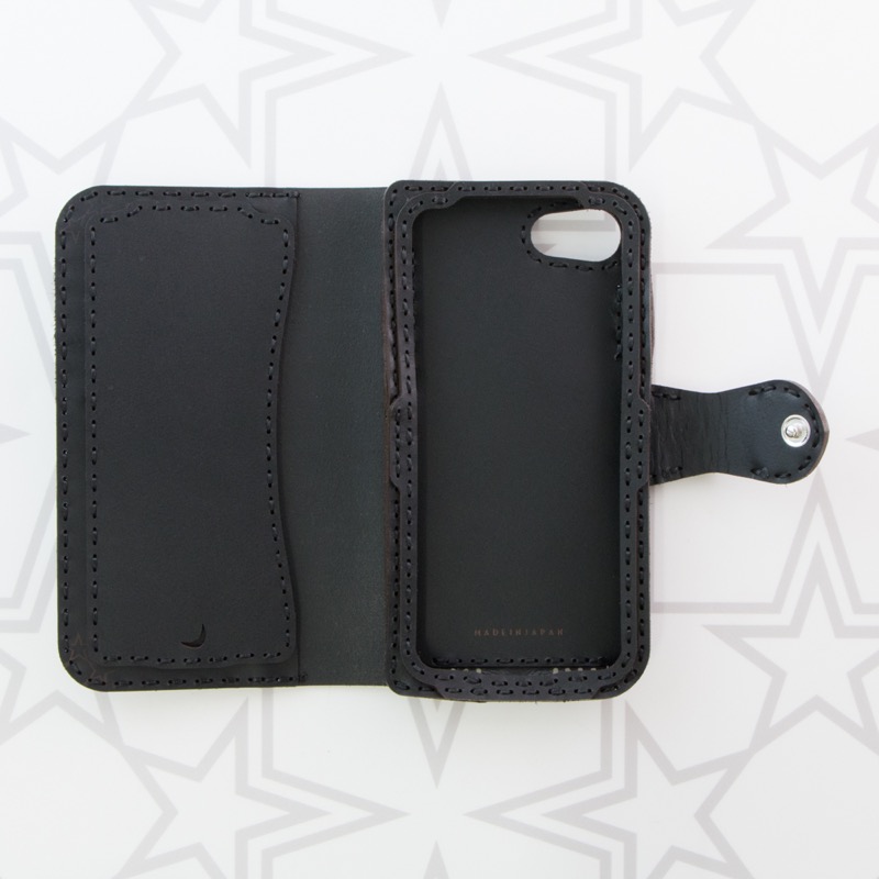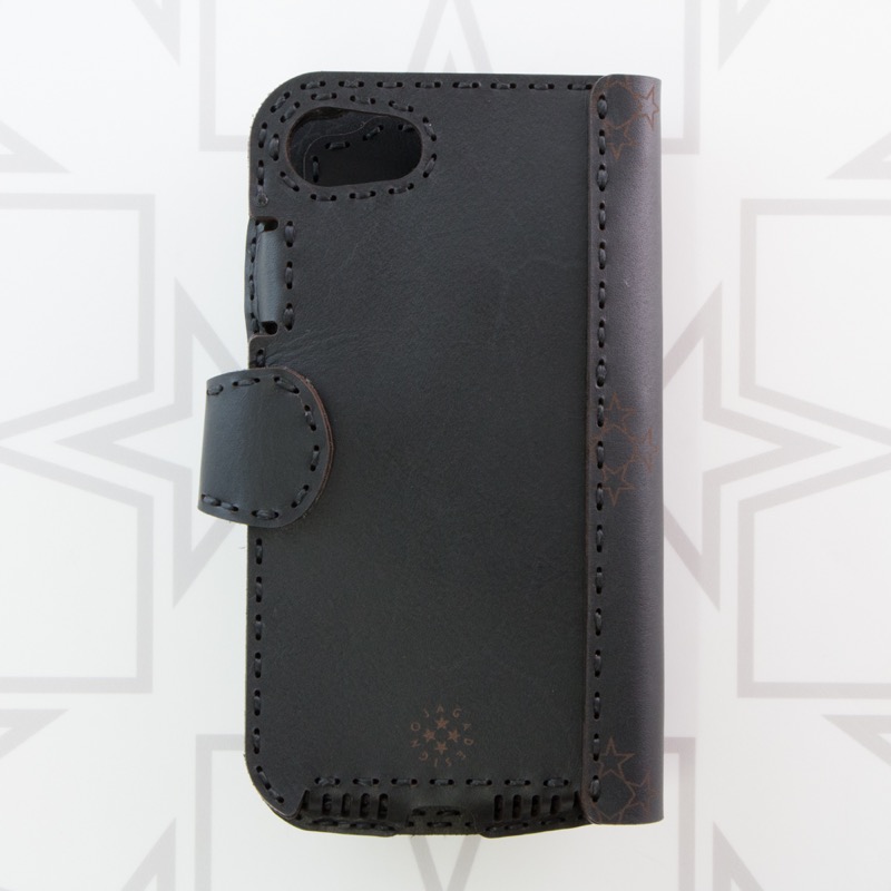 ダイアリータイプのiPhone6/7/8ケースです。緩やかな曲線でカットされた革を重ねオジャガスターを配置したシンプルなデザインで、ビジネスシーンにもお使いいただけます。開くと内側には中に仕切りついたポケットが備わっており、カードや名刺などが収納出来ます。iPhoneの側面をすべてレザーで覆った保護性の高いケースです。※お使いの充電器によってはiPhone8のワイヤレス充電機能がお使いいただけない場合がございます。予めご了承下さい。