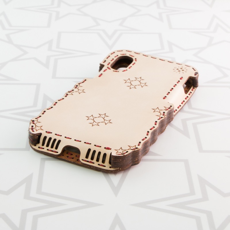 iPhoneの側面をすべてレザーで覆った保護性の高いデザインです。