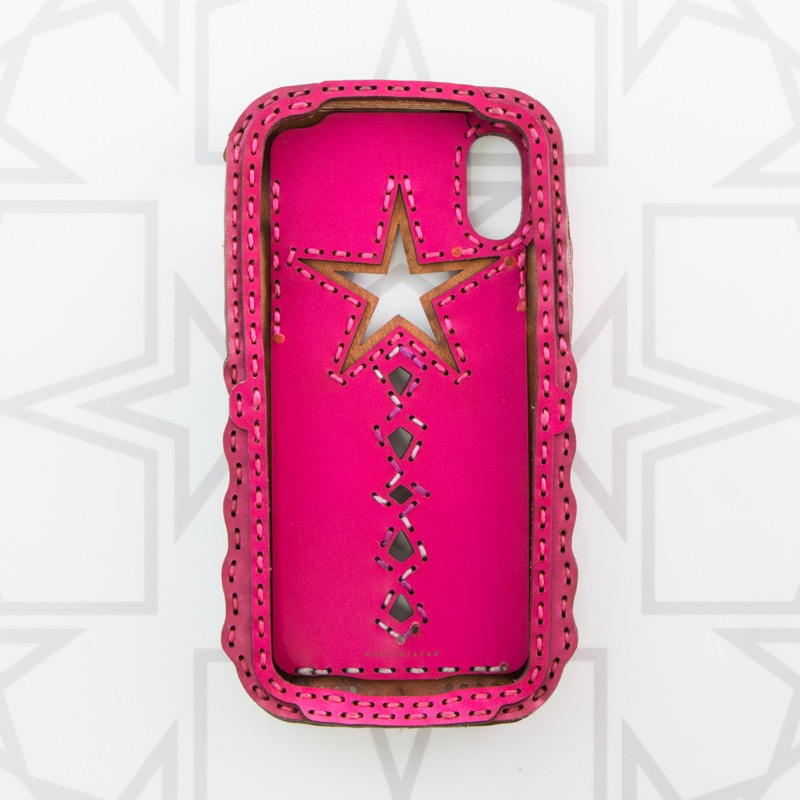 背面にオジャガスターが入ったiPhone X/XS用ケースです。Appleマークが覗く大きな五芒星と個性的なカットが目を惹くデザインは、iPhone本体が透けるくり抜きを施したさりげない遊び心がポイント。iPhoneの側面をすべてレザーで覆った保護性の高いアイテムです。※画像4枚目は着用イメージです。※お使いの充電器によってはワイヤレス充電機能がお使いいただけない場合がございます。予めご了承下さい。