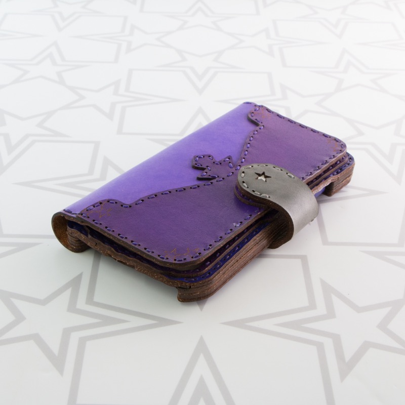 表にレザーの切り返しが入り、星でくり抜かれたベルトが付いた、シンプルで使いやすいデザインに仕上がりました。
