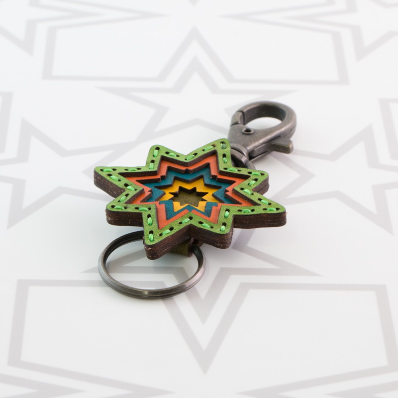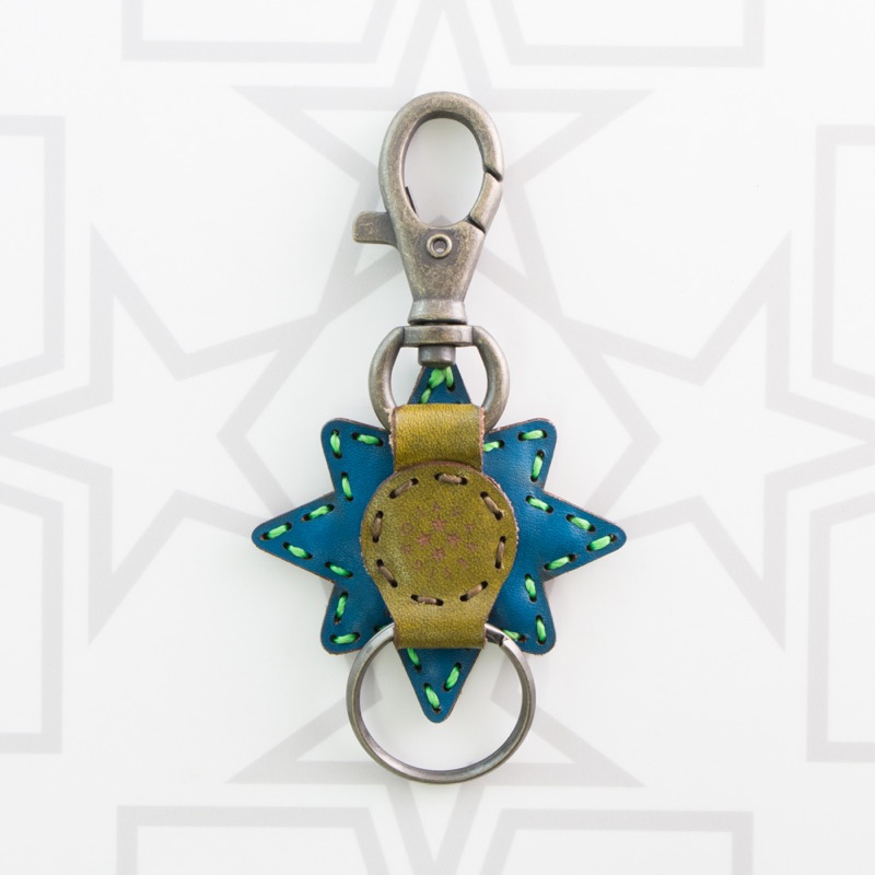 新作のキーホルダーが登場。ベルトループやバッグなどに簡単に着脱が出来るナスカンと、キーキャップや鍵を着けることが出来る二重リングが着いた便利な仕様です。革を幾重にも重ねて八芒星を型取り、インパクトのあるデザインに仕上がりました。お気に入りのキーキャップと合わせてコーディネートをお楽しみ下さい。