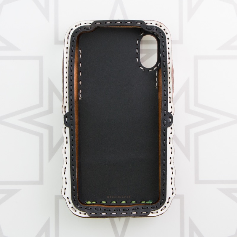 iPhone本体をしっかりと覆うことが出来、側面にもレザーを使用することで保護性を高め、ウェーブ状のカットを施すことで持ちやすさも重視。