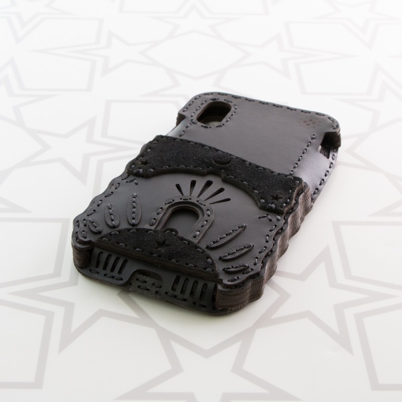 iPhone本体をしっかりと覆うことが出来、側面にもレザーを使用することで保護性を高め、ウェーブ状のカットを施すことで持ちやすさも重視。