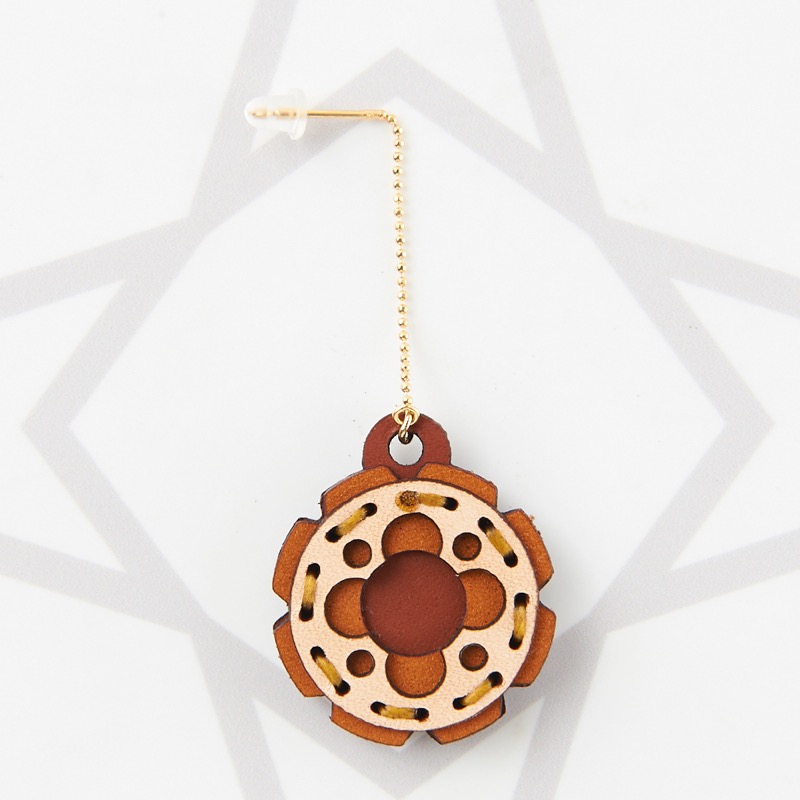 新デザインのアメリカンピアスです。幾何学模様やフォークロア柄をイメージさせる独特なモチーフをアイコンにし、さりげないパンチングが目を惹くデザインです。チェーンが長めのアメリカンピアスなので、キャッチを付けてポストタイプとして着けたり、ピアスホールにチェーンを通し、チェーンを後ろに垂らして着けたりと、様々なアレンジが可能です。表裏それぞれ異なったカラーリングなので、リバーシブルでお楽しみ頂けます。片耳用なので、左右違ったデザインでのコーディネートもおすすめです。