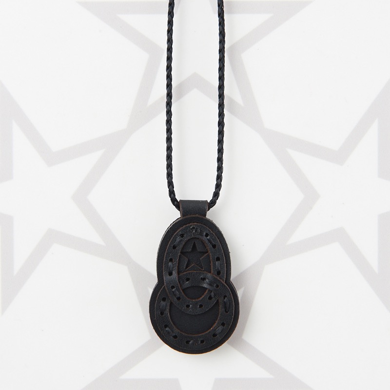 新デザインのネックレスです。幾何学模様やフォークロア柄をイメージさせる独特なモチーフをアイコンにし、編み込みのような革の重なりと星のくり抜きが目を惹くデザインです。表裏それぞれ異なったカラーリングなので、リバーシブルでお楽しみ頂けます。紐部分のレザービーズで紐をお好みの長さに調整出来る仕様となっております。