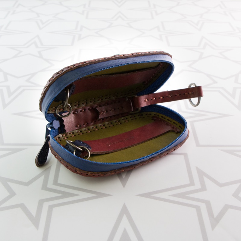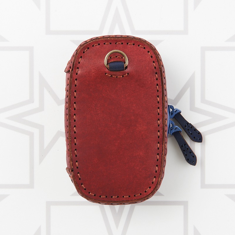 編み込み風のデザインを施したキーケースです。ダブルジップのラウンドファスナーと厚めのマチを付けることで中身を大切に保護するだけでなく、たくさんの鍵はもちろん、車用のスマートキーや厚みのあるノンタッチキーも収納が可能。よく使う鍵はレザーコード付きの二重リングに着けることで、鍵の開閉もスマートに。内側にはカードが収納できるようになっているので、駐車券やICカード、カードキーなどを入れられます。背面のDカンにはキーホルダーを着けたり、ベルトループと繋いだりと、カスタムしてお使い下さい。