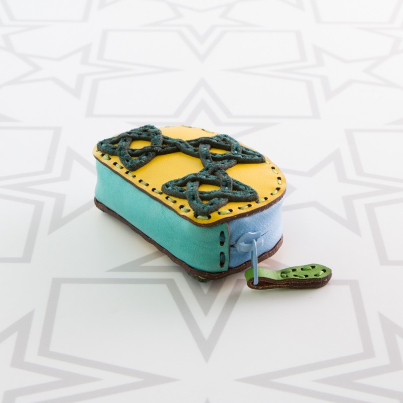 編み込み風のデザインを施したラウンドジップコインケースです。