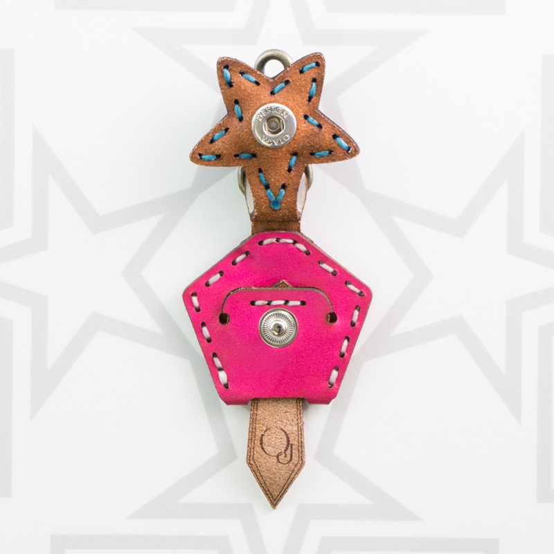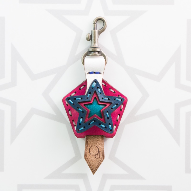 五芒星がデザインされたキーキャップです。ベースの五角形の上に3枚の革の五芒星を組み合わせた、立体感のある仕上がりです。お手持ちの鍵をおしゃれに彩るだけでなく鍵の目印にもなり、便利なナスカン付きなので、ベルトループ、キーホルダー、ファスナーなどに着けて紛失防止にも役立ちます。