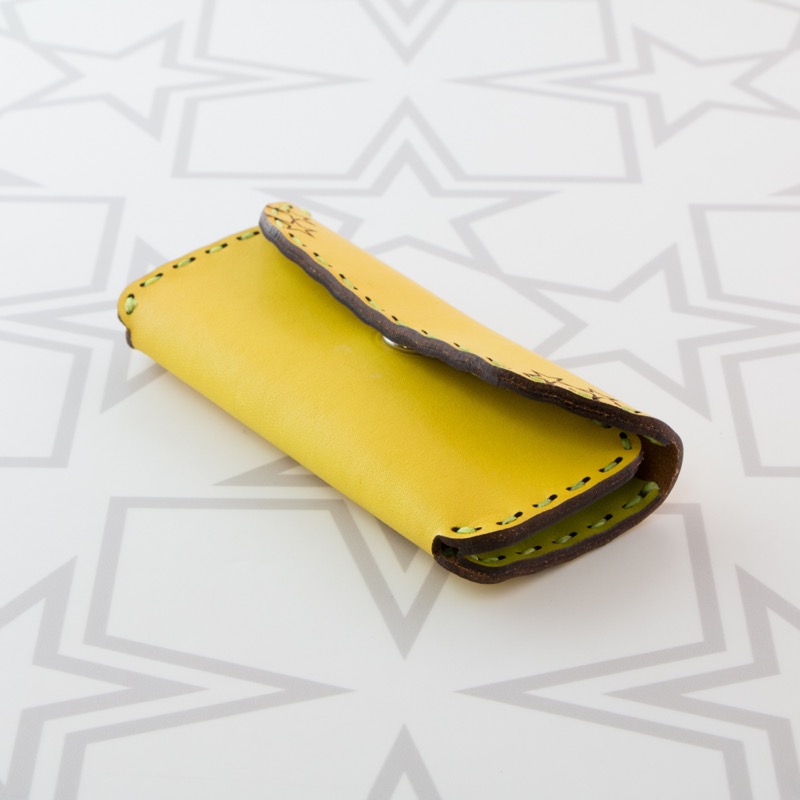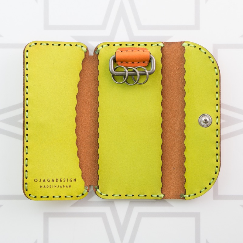 シンプルなデザインを施したキーケースです。レザーの色をお楽しみいただけるよう、シンプルに焼印のみを施し、ポケットにも入るすっきりとしたフォルムに仕上がりました。中には二重リングが3つ付いており、複数の鍵が着けられます。
